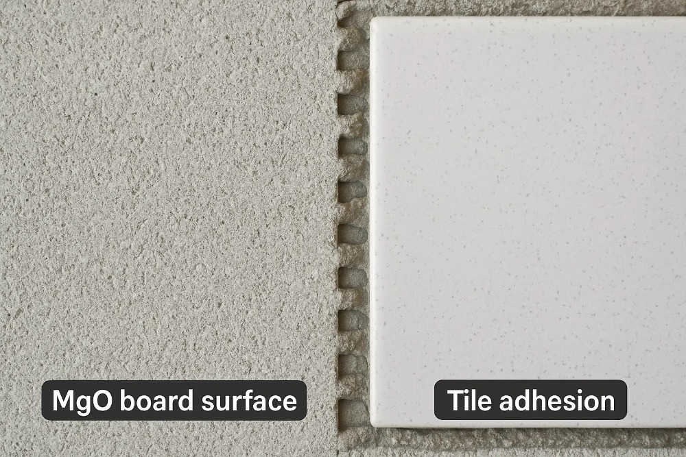 Ambele plăci oferă suprafețe excelente pentru adeziunea țiglă. Diferența cheie constă în metodă. Natura poroasă a bordului de ciment permite mortarului subțire să se lege mecanic pe măsură ce se vindecă la suprafață. Unii producători recomandă amorsarea suprafeței pentru a reduce absorbția și pentru a împiedica setul subțire să se usuce prea repede, ceea ce poate slăbi legătura. Suprafața netedă și densă a MgO Board oferă o legătură chimică puternică cu set subțire, asigurându-se că plăcile aderă în siguranță și durează ani de zile.